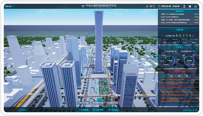 IAOS超高層智慧消防平臺是以北京市朝陽區(qū)CBD核心區(qū)中信大廈的設(shè)計成果為基礎(chǔ),重點研究BIM技術(shù)在超高層建筑運行過程中的綜合消防管理應(yīng)用、結(jié)合虛擬現(xiàn)實技術(shù)和尋優(yōu)算法的消防疏散和救援的路徑模擬、物聯(lián)網(wǎng)信息與三維可視化管理界面的交互、消防相關(guān)數(shù)據(jù)統(tǒng)計分析等,實現(xiàn)通過智慧化消防管理平臺的建設(shè)促進設(shè)計交付環(huán)節(jié)與運營維護環(huán)節(jié)的良好銜接。