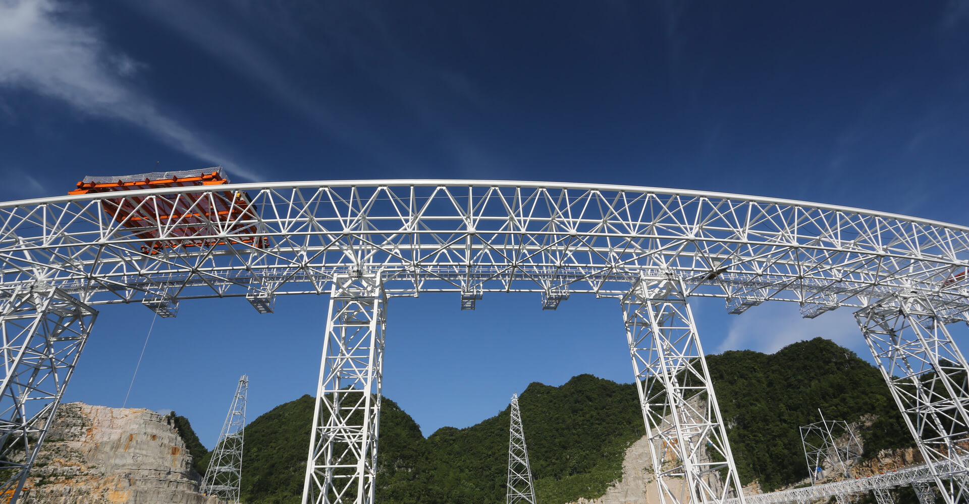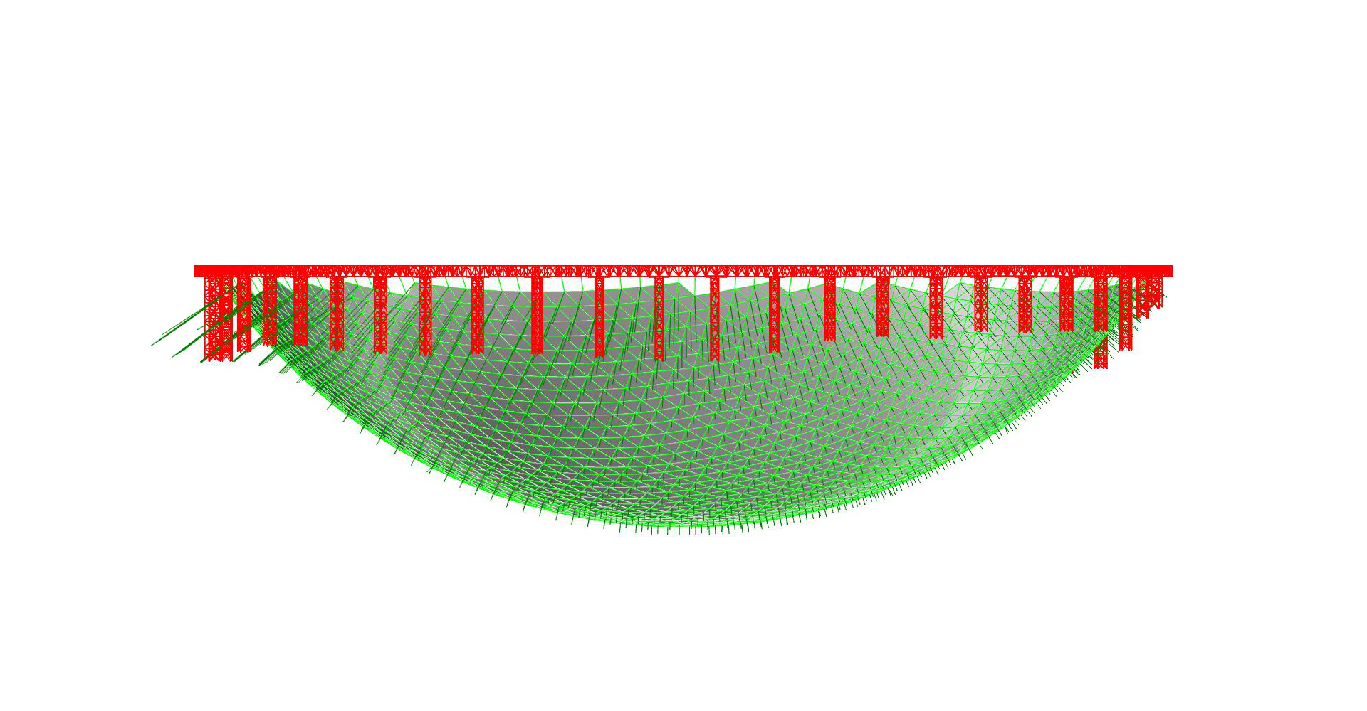 基于上述特點,望遠鏡的建造凸顯三大技術(shù)難題:1、適應(yīng)復(fù)雜山區(qū)地形、具有主動變位功能的超大型射電望遠鏡反射面支承系統(tǒng);2、超大型復(fù)雜空間結(jié)構(gòu)工程應(yīng)滿足望遠鏡毫米級精度要求;3、復(fù)雜地形、地貌條件下超大型結(jié)構(gòu)建造。