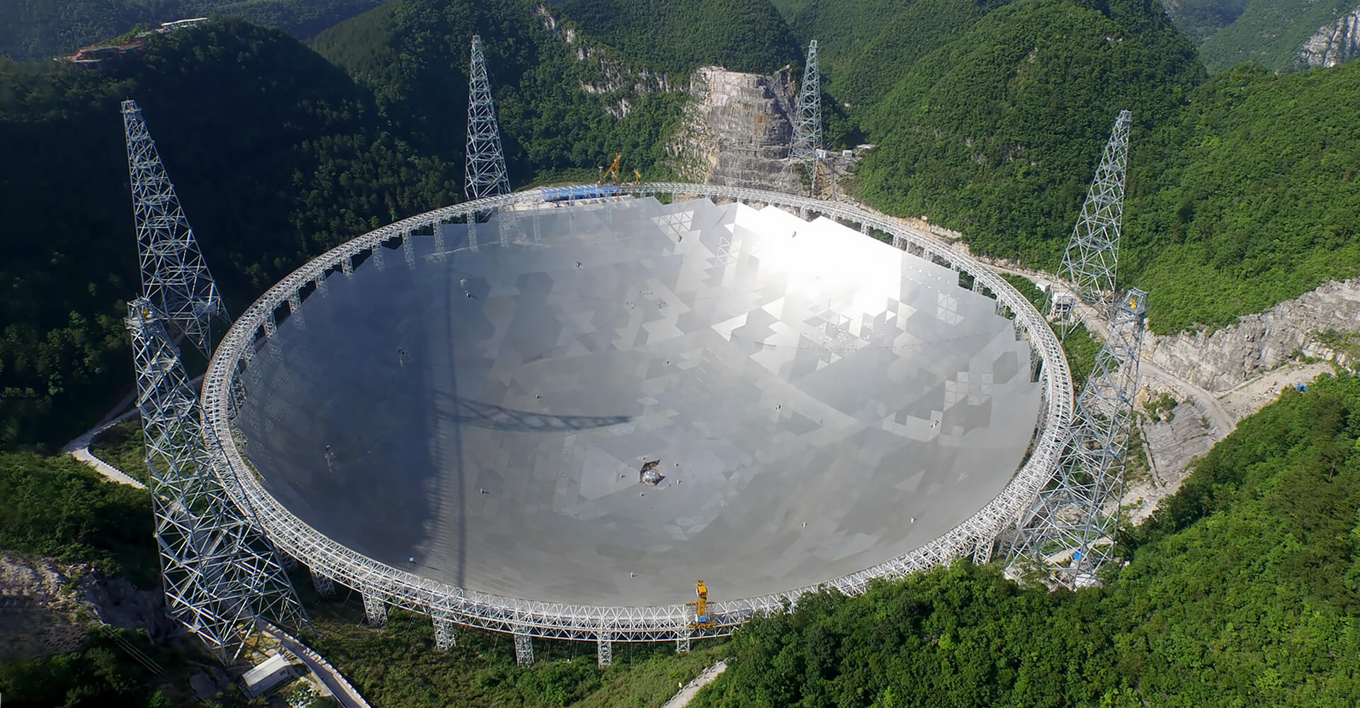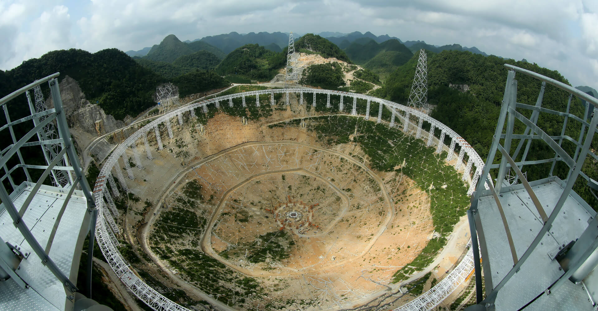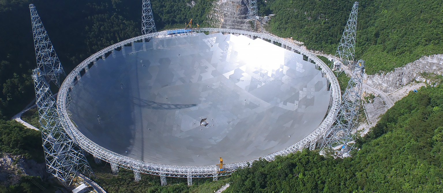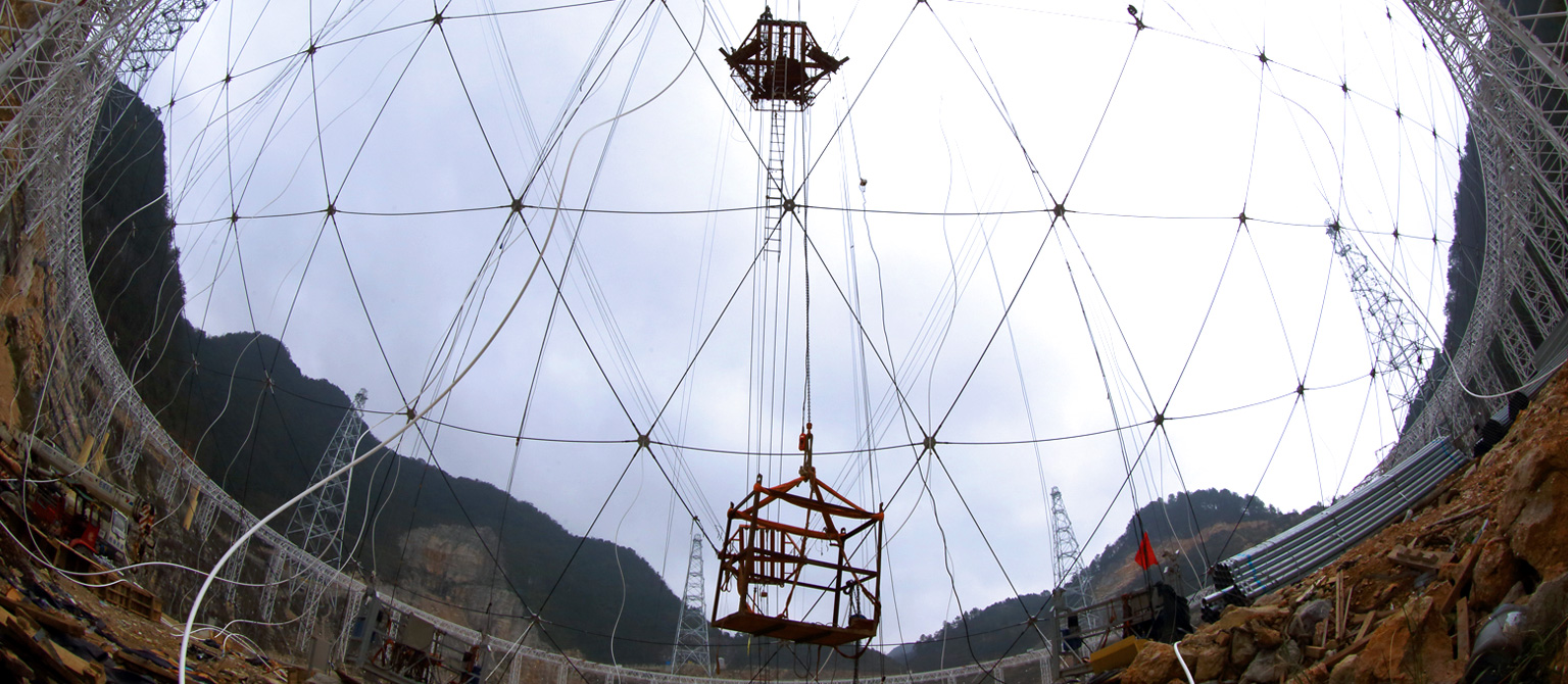 FAST反射面具有四大特點。一、尺度巨大,口徑500米、面積是美國望遠鏡的2.5倍。二、主動變位,反射面在工作時,能實時調(diào)整形態(tài),在觀測方向形成300米口徑瞬時拋物面以匯聚電磁波,這完全不同于美國固定反射面望遠鏡。三、超高精度,作為天文望遠鏡,精度需達到毫米級。四、邊界復(fù)雜,工程位于地質(zhì)、地貌復(fù)雜的喀斯特洼地。