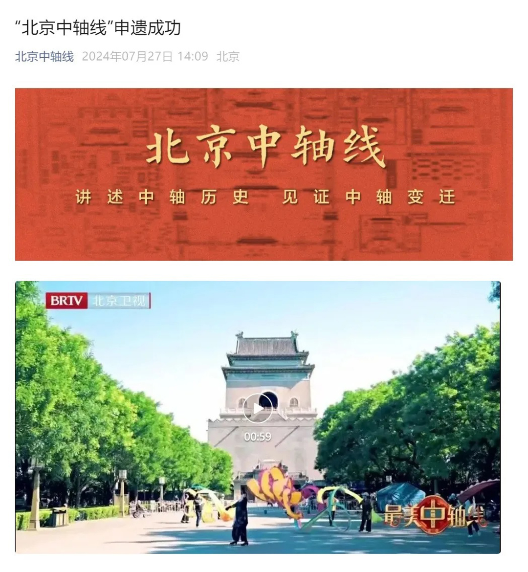 (轉載北京中軸線申遺辦的微信宣傳稿——詳見下文截圖)