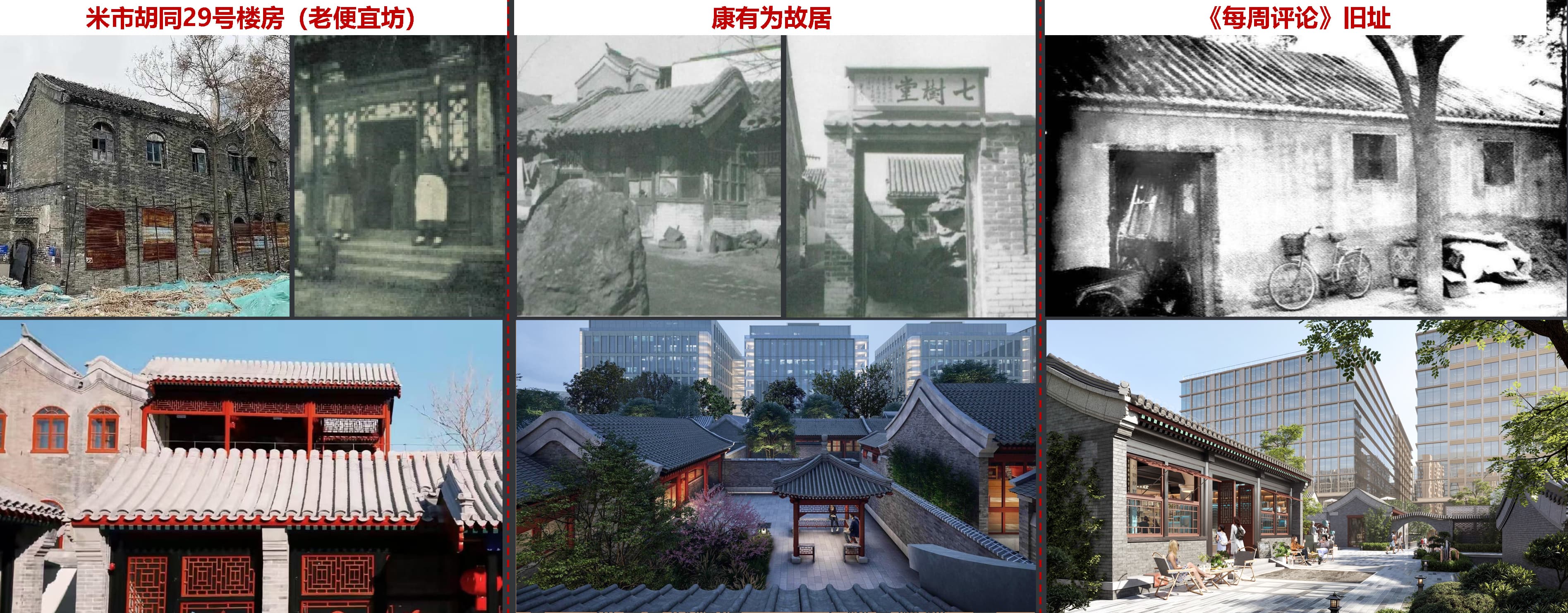 地塊內(nèi)西北側(cè)集中坐落著一批文保單位,區(qū)域內(nèi)保存著大量明清至近代的歷史建筑群,該區(qū)域四合院保存較為完整,是十分珍貴的四合院歷史遺產(chǎn),較好地保存了從金中都到明清時(shí)期魚(yú)骨狀街巷走向和院落格局,是宣南地區(qū)會(huì)館、名人、商業(yè)文化的集中承載區(qū)之一。其中,最負(fù)盛名的文保建筑當(dāng)數(shù)北京市級(jí)(省級(jí))文物米市胡同29號(hào)、康有為故居和《每周評(píng)論》舊址。項(xiàng)目采用傳統(tǒng)建筑技術(shù)與新技術(shù)材料結(jié)合方式,進(jìn)行修復(fù)和復(fù)建,傳承創(chuàng)新“北京四合院傳統(tǒng)營(yíng)造技藝”。